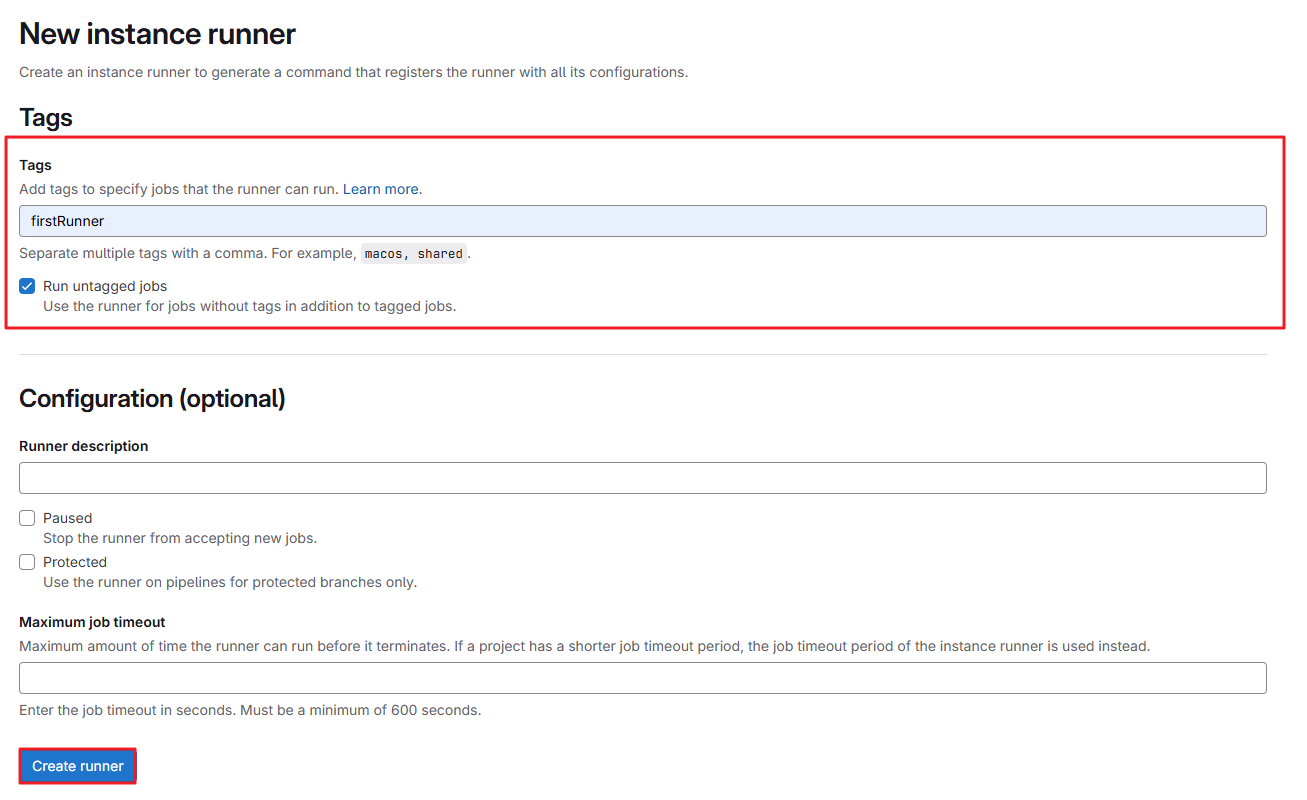 - Run untagged jobs (태그가 지정되지 않은 작업 실행) 체크