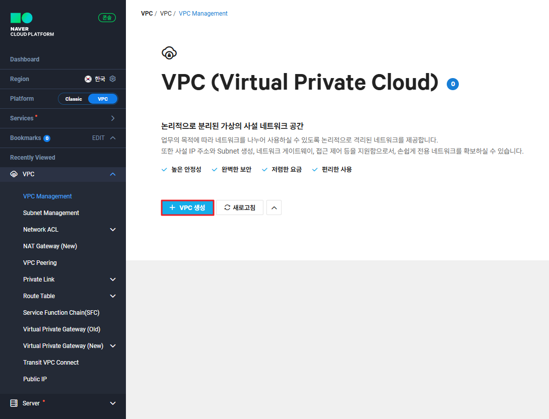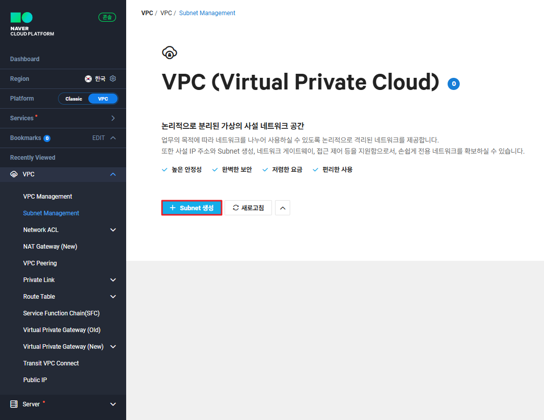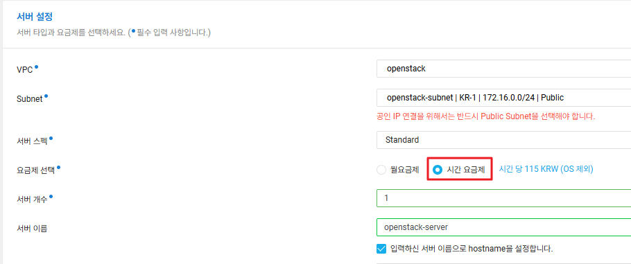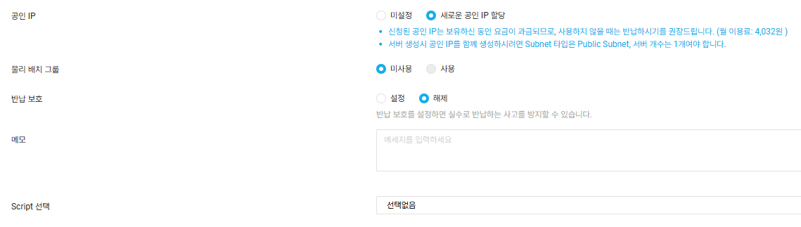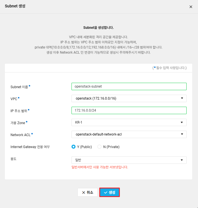 - 외부에서 서버 접근이 필요하므로 Internet Gateway 전용 여부에 Y (Public) 을 선택하였다.