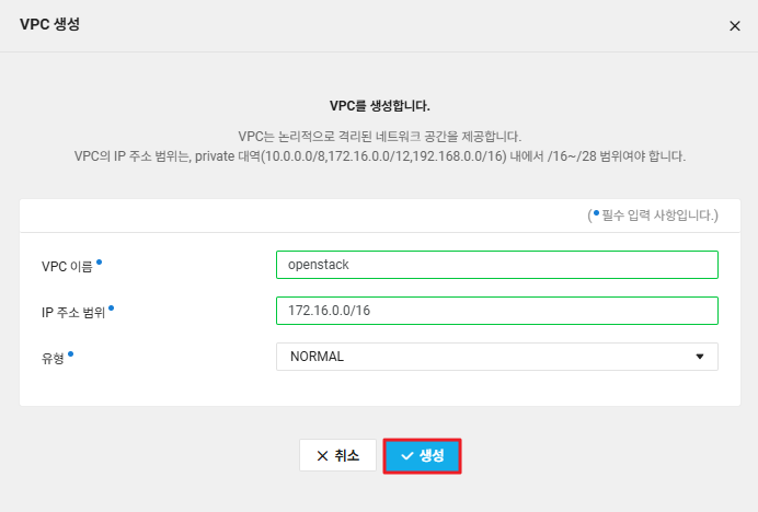 1.3 VPC 이름 및 IP 주소 범위 설정