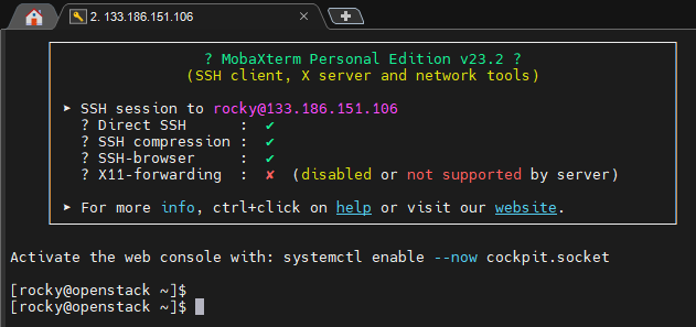 그 후 해당 플로팅 IP 와 다운로드 받은 인증서 키 파일을 통해 SSH 툴로 접속한다.