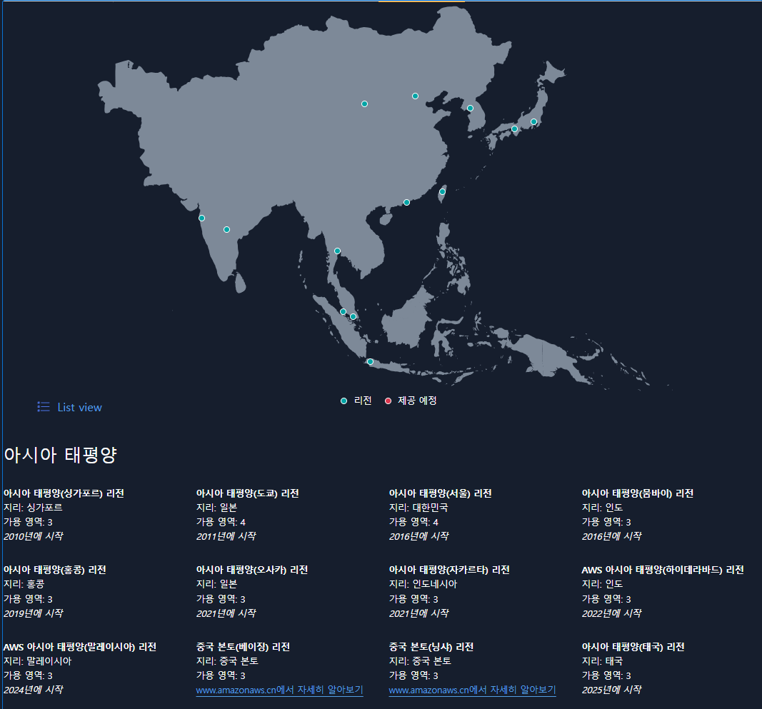 AWS 의 각 리전 및 가용영역에 대한 정보 확인 사이트