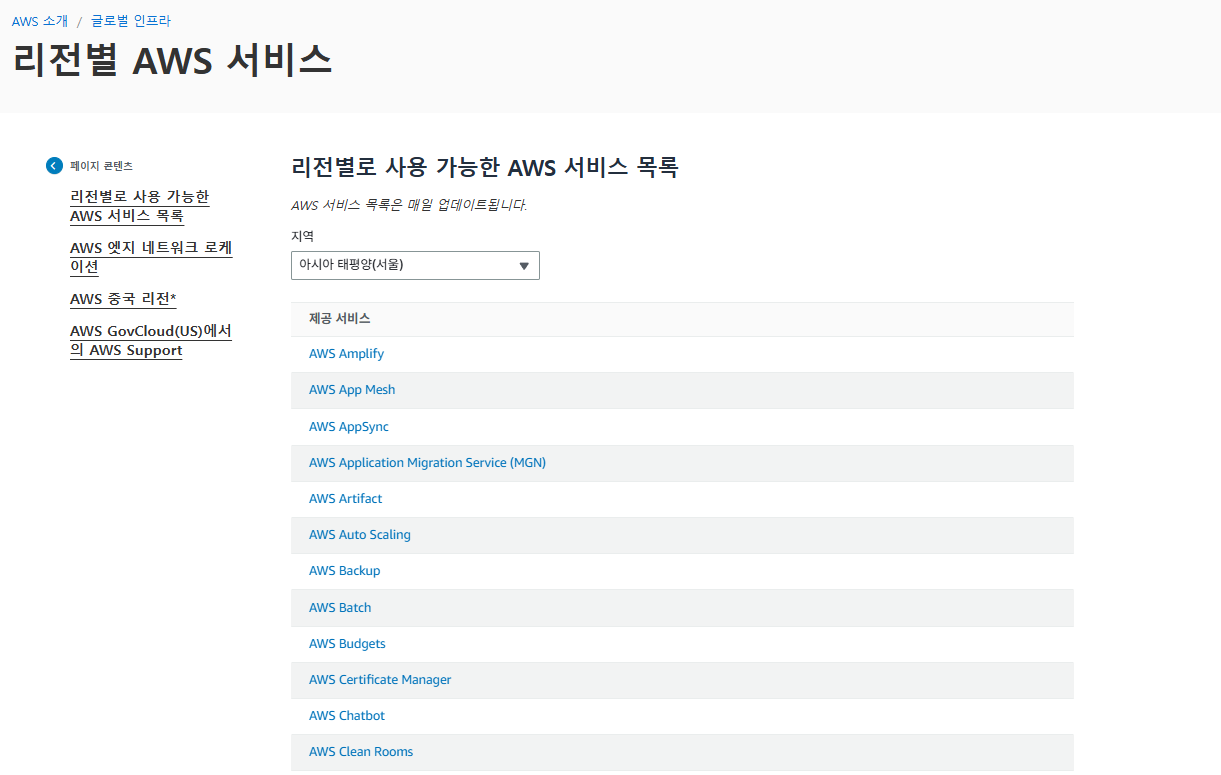 https://aws.amazon.com/ko/about-aws/global-infrastructure/regional-product-services/