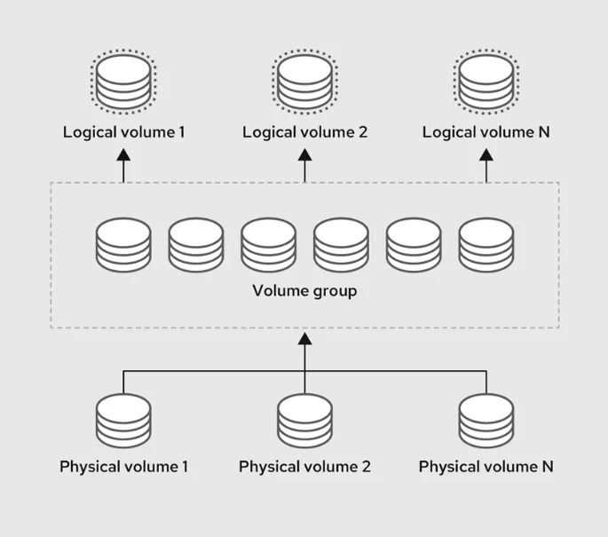 : 논리 볼륨 관리자, 여러 개의 물리적인 하드디스크 파티션을 Volume Group 으로 묶은 다음, 논리적인 디스크로 할당하여 유연하게 관리 할 수 있게 해 주는 기술