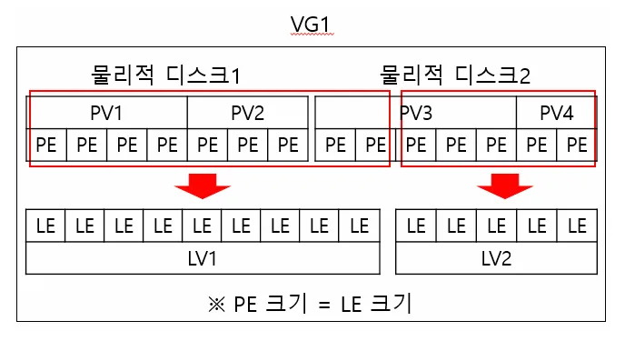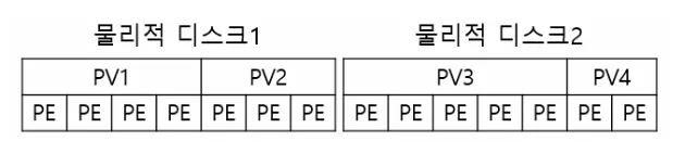 PV는 일정한 크기의 PE(Physical Extent)들로 구성이 된다.