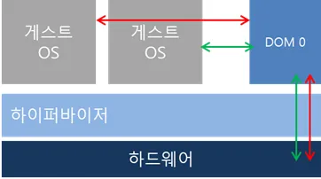 각 게스트 OS는 ‘DOM 0’ 관리 머신을 거쳐 하이퍼바이저와 통신하므로, CPU, RAM와 같은 I/O가 잦은 자원을 컨트롤 하기에는 번거롭습니다.