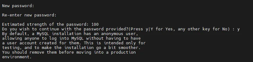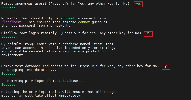Remove anonymous users? (Press y|Y for Yes, any other key for No) : yes