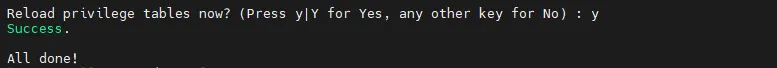 Reload privilege tables now? (Press y|Y for Yes, any other key for No) : y