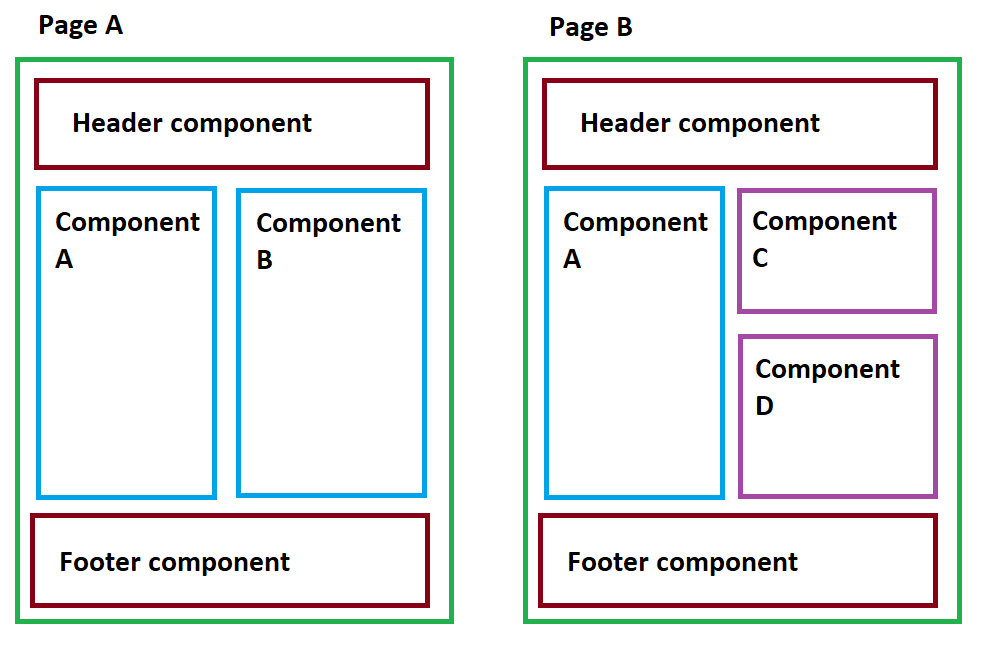 위의 이미지 처럼 컴포넌트들이 모여 한 페이지를 작성하고, 특정 부분만 데이터를 바인딩하는 개념이다.