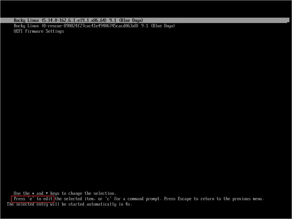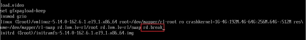 4번 행의 끝 rd.break 추가 후 Ctrl+x