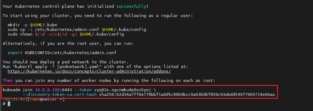 kubeadm join 10.0.0.100:6443 --token vyq93s.ogcnmku4p0ox5yoj \