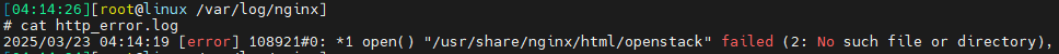 nginx 의 404 error 를 발생시킨 후, error.log 로그파일에서 에러를 확인할 수 있다.