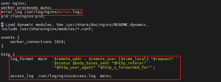log_format 을 통해 main 변수에 로그 형식을 지정할 수 있다.